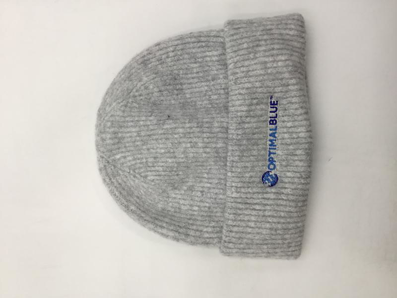 Trendy new beanie that has the buttery soft feel of cashmere yet is recycled polyester and acrylic. Logo is embroidered on cuff. One size fits most.
